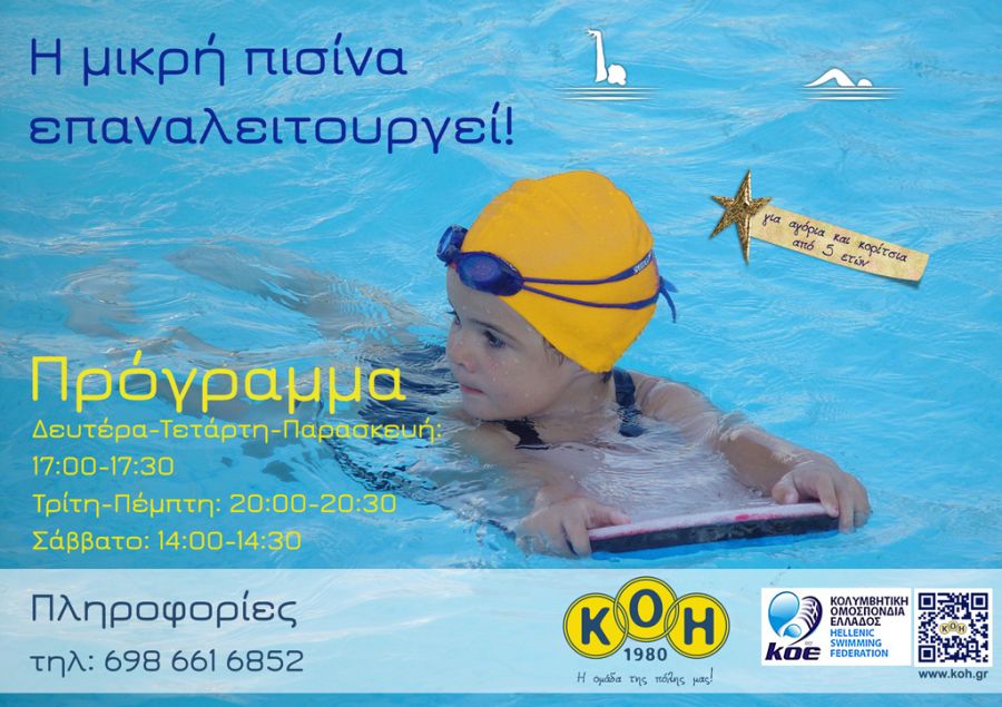 Η προγραμματισμένη για τον μήνα Ιούλιο έναρξη των μαθημάτων στην μικρή πισίνα, ακυρώνεται λόγω τεχνικών προβλημάτων στη λειτουργία της μικρής πισίνας. Το πλάνο προέβλεπε την επαναλειτουγία της μικρής πισίνας σύμφωνα με τα ισχύοντα υγειονομικά πρωτόκολλα,...